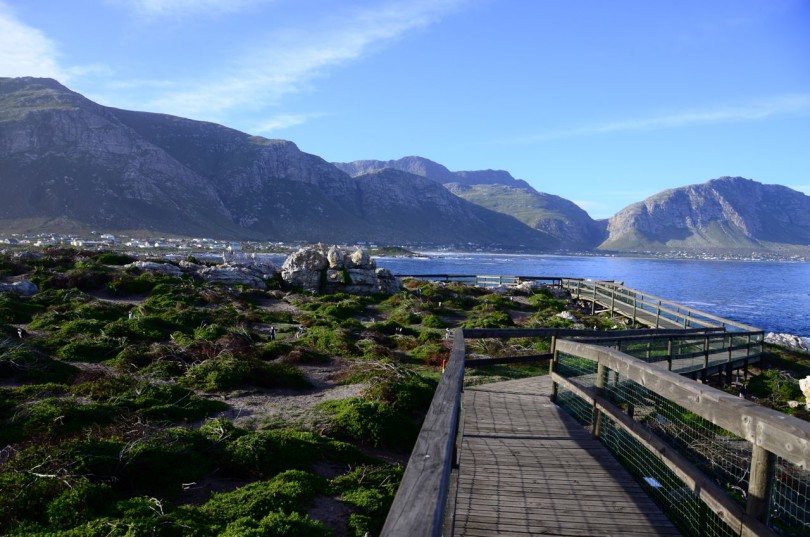 We were in Room #2. Comfy beds (two twins), big bathroom, and balcony with a lovely view of Betty’s Bay. The Trail House is a modest and welcoming home with three rooms for let. The owner, Fransel, a vibrant woman (vegetarian!) with two beautiful dogs and two adorable kids, makes this place feel like home. It’s cool to be in a house. There’s a dining area and fridge for the guests. There was some noise from the other guests (talking to one another and on cell phones) in the evening and morning hours. But because it’s a house, one can expect this. Located on the other side of the R44, we heard some traffic intermixed with the sounds of the sea, but traffic ended early and all that remained were the comforting sounds of waves.