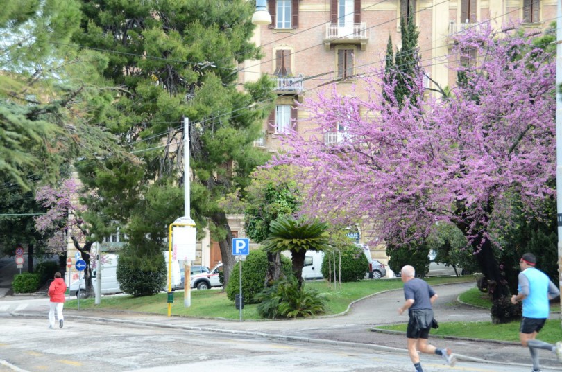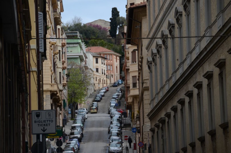 From Venice, we drove south in our adorable Cinquecento feeling all Italian-like. I have distant cousins in Cesanatico, so we stopped there for a visit on the way to Ancona. Naturally, I got us lost looking for their house. That delay along with a warm Italian welcome from the relatives and an unexpected long drive to Ancona put us at our hotel very late – near midnight – tired, excited, hungry. We woke the hotel manager who opened up the kitchen for us so that we could prepare a snack – gratis. The next day we explored the town by foot and had a delightful meal at Ristorante Giardino – lovely ambiance in a garden setting – and they were more than happy to prepare a fresh and vegan pasta and mushroom dish for me.