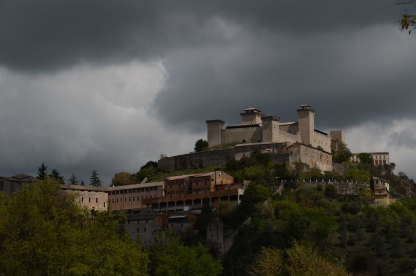 The dramatic backdrop behind Spoleto’s castle, La Rocca Albornoziana