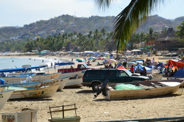 While I understand lent, Palm Sunday, Good Friday, and Easter Sunday from my own Catholic upbringing, Semana Santa, especially from a social perspective, is a phenomenon about which I was not one bit familiar. Peter Cotton Tail and dyed eggs are not part of the festivities. My friend, Nancy, who is from the area, educated me a bit. The first week, Semana Santa, the holiday revelers are mostly blue collar-type workers – those who are doing more service-oriented or labor-oriented work. This explains all the young folks we saw on the bus coming back from Puerto Vallarta the day Jaime flew out. That bus ride was an adventure in and of itself. But given that it was only 25 pesos (2 bucks), one cannot expect PrimeraPlus. I digress, these young folk set up camp on the beach near the campground and northwards and also near the boats on the south end. An incredible site to behold, a beach packed with colorful tents. I can imagine the fun that was had. Camping on a beautiful beach in the tropics. Fireworks at night accompanying music and the seemingly never-ending flow of cervesa Mexicana. Sunbathing and body surfing by day. Chilling and enjoying the Rest and Relaxation they duly earned.