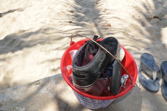 This is a sentence I mastered in Spanish. Do you need a bag for the trash? It was a delight to see folks take the bags and know that a few animals may have been saved as less plastic and crap were going into the ocean. A few small children and a couple of sunbathing adults joined in to help us briefly.
