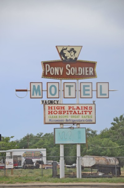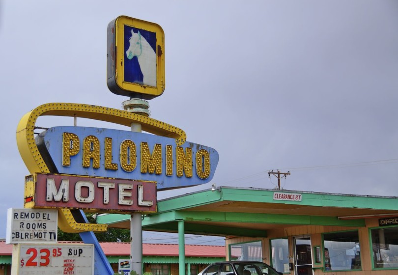 The moment we arrived to town, I could smell the approaching storm, so we tooled up and down the main strip a few times (in the car) before being forced off the road and seeking shelter at our motel. What comes to mind when I think about Tucumcari? Museums, murals, trading posts and retro motels including the very famous Blue Swallow Motel.