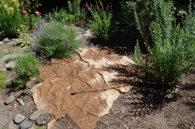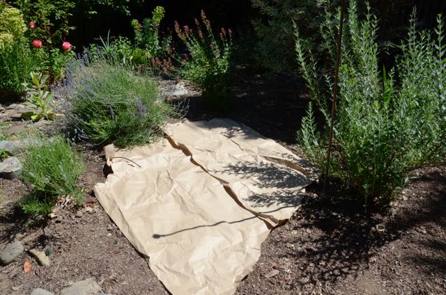 - Newspaper, cardboard, and brown paper work wonders (another trick learned through the Master Gardener program at OSU). I’m dealing with an invasive plant in my own backyard. Rhizomes. Oy. After about 30 hours of digging, I got it to where I could cover the rest of the space with cardboard, newspaper, brown paper – anything I could get my hands on. I scored a load of brown paper after a picnic where all the tables were covered with the stuff. Instead of landing in the trash, it’s now advocating for my weed-free yard. I followed the paper with a thick layer of mulch. This process also helps bring life to the soil beneath as all that stuff decomposes. If you have just regular weeds, put the paper on top and walk away. Had my weeds not been invasive, I would’ve saved myself the trouble of all that digging.